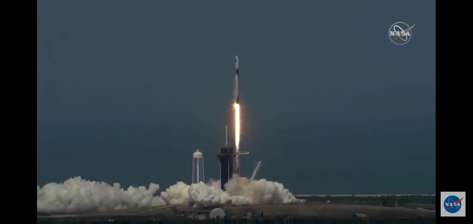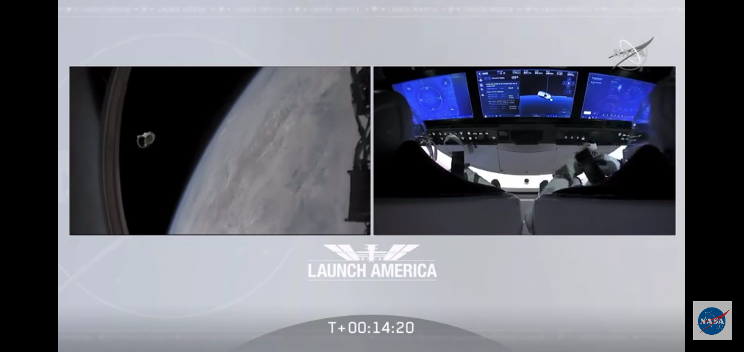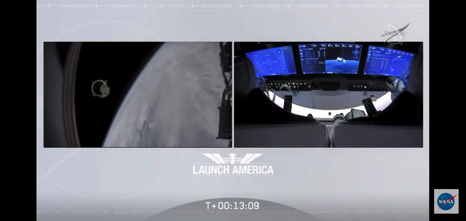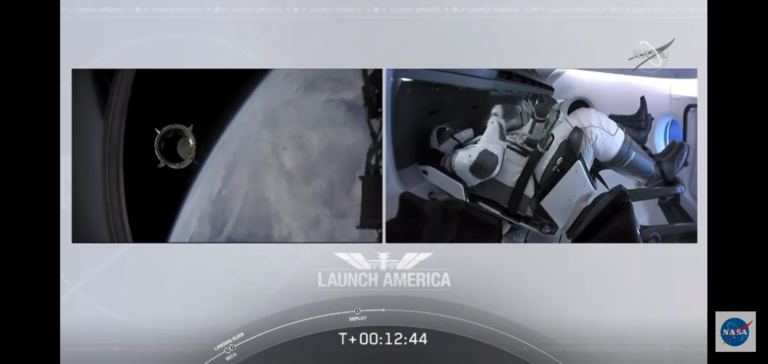 Ok here, we go, stage-1 shutdown and separation, stage-2 ignition. Those space suits are slick, Doug and Bob are ready to go to the International Space Station, or go on a time-heist for Infinity Stones, you know, whatever comes up.