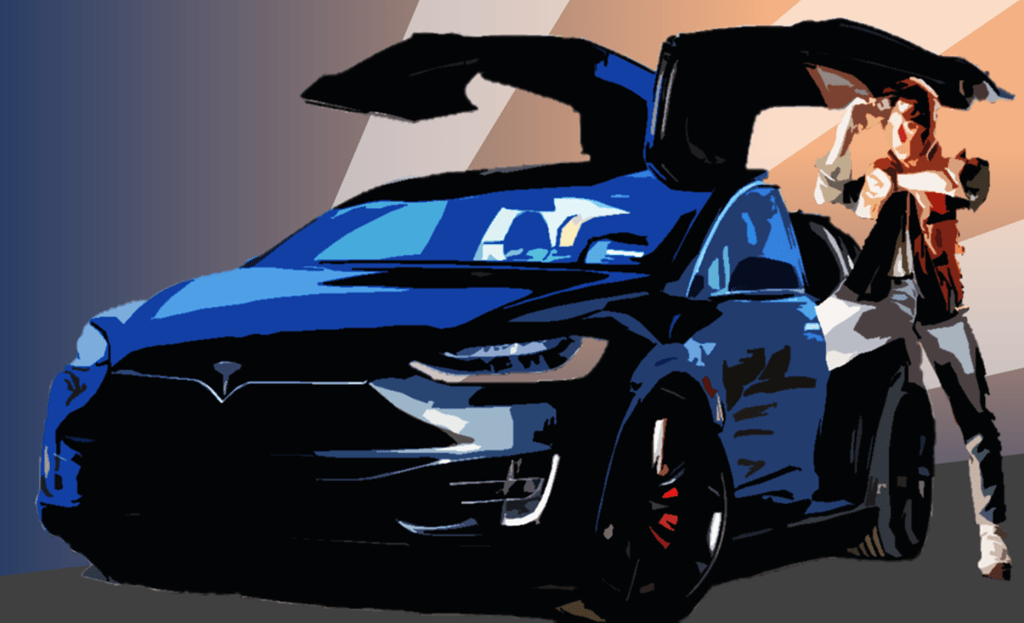 INT. MOVING TESLA – (PROCESS)